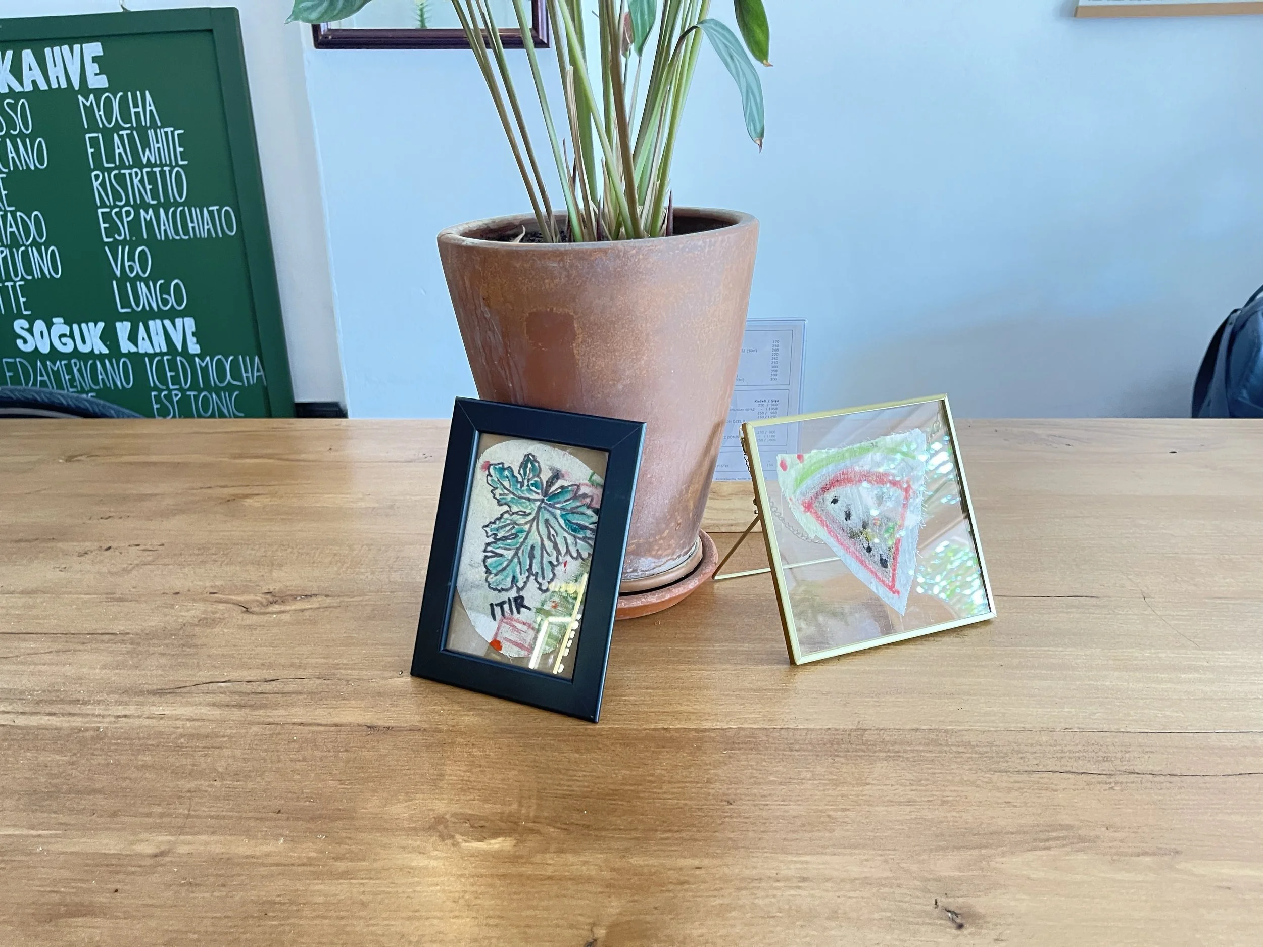 بعد أن ننتهي من ممارسة الرسم الجماعي، نعلق العمل في مكان يسهل على الجميع الوصول إليه، باستخدام أشياء معاد استخدامها و Found Objects، مألوفة بصريًا، لخلق مشهد أعمق يمكن للمشاهد أن يرتبط به. كنبة، طاولة عشاء، أوراق، أقلام، ألوان، مقصات وغيرها