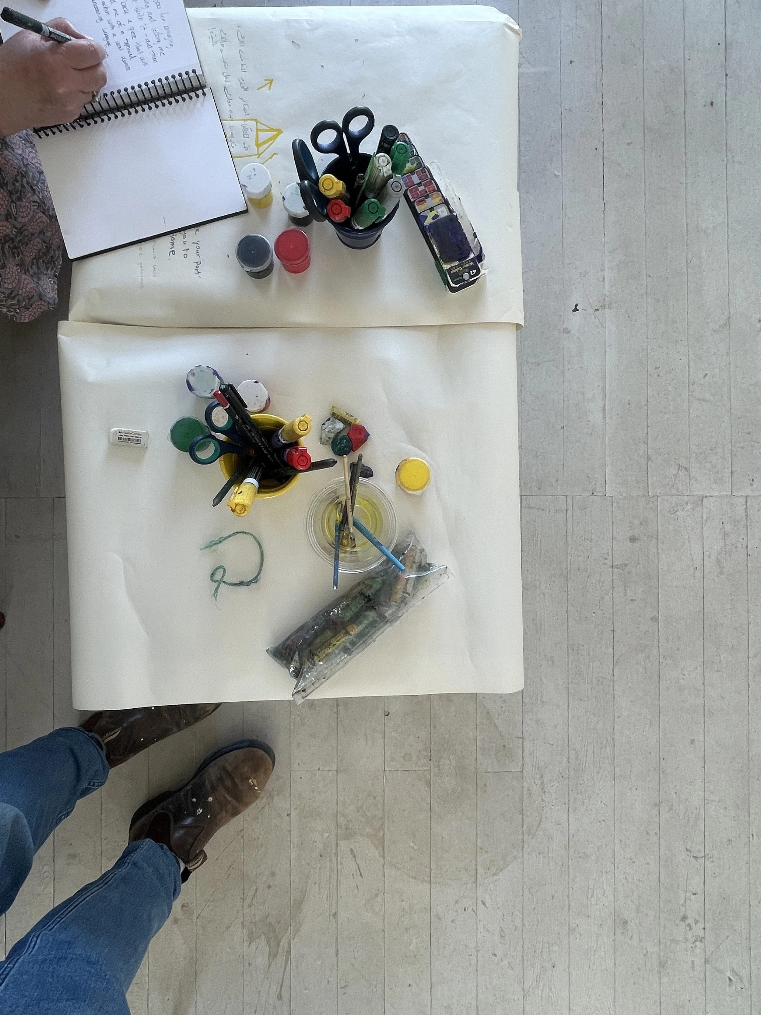 From the "From and To" series, this exercise or artwork relies not only on drawing, but on all of our senses. We begin with conversation and the deconstruction of concepts, then move into the act of drawing accompanied by various elements including Palestinian songs that have influenced my artistic practice, and the questions that arise for any of the participants during this experience, opening a dialogue around everything related to art and to me as a Palestinian artist from Jerusalem.