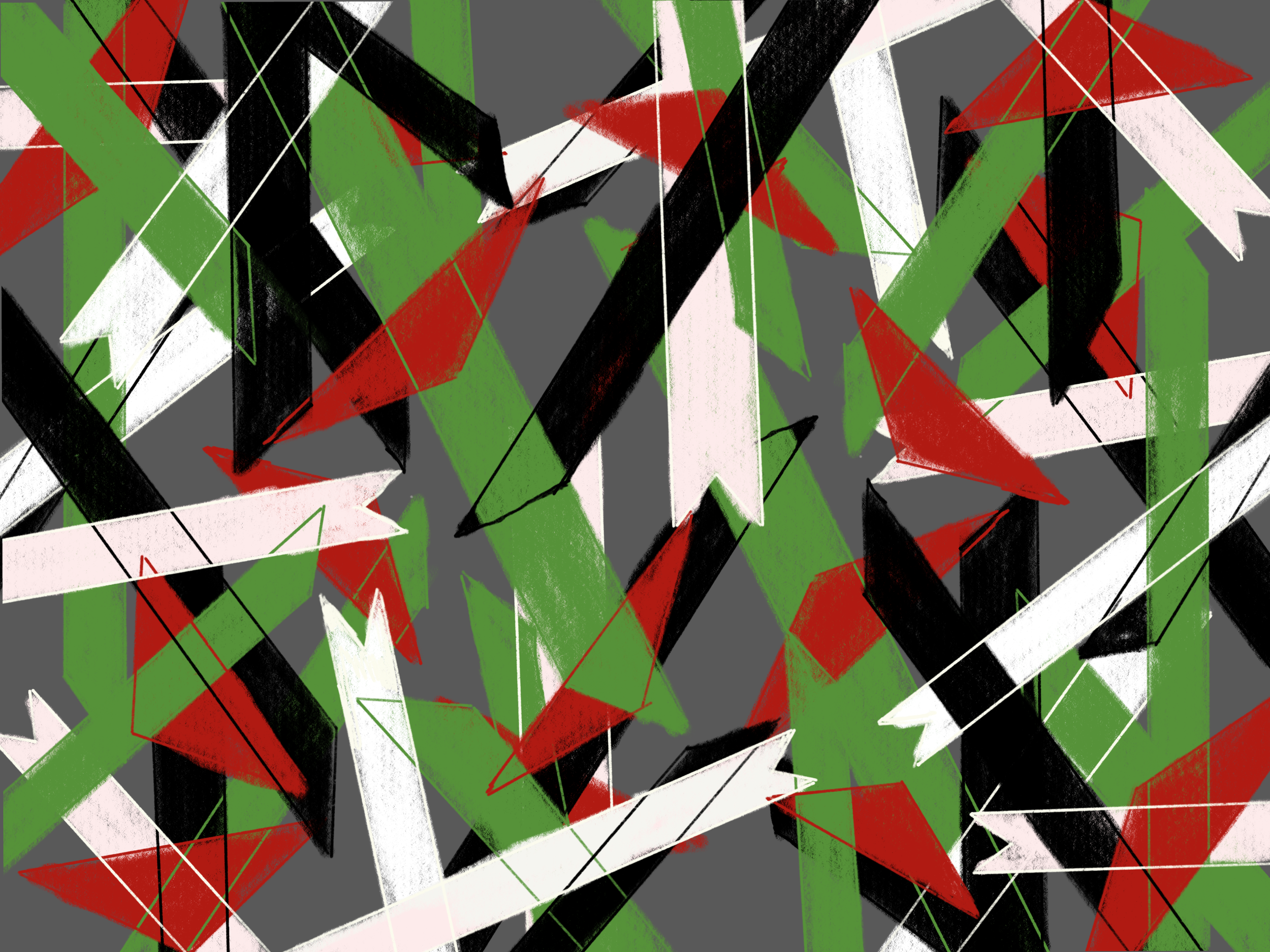 In moments of crisis, people always return to the Palestinian flag. Recently, it has returned to the center of attention along with symbols like the watermelon taking the front lines. My connection with the flag, and with the artwork that represents it, shifts with events. Its colors have become a tool of communication between me and myself and i, me and the viewer, me and those around me, across emotions, scenes, and various states of being.